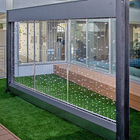 Air bubbles ascend inside the tank. Express movement in your space with the motion of the bubbles. You can create a dynamic wall of water by installing multiple panel tanks. As a partition or wall, this is the most readily installed type of Pearl Airation, often used in commercial facilities such as offices, hotels, condominiums, hospitals, etc.